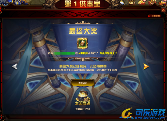 3. 每日晚10点会结束供奉,并根据太阳礼券获取情况抽取最终奖励
