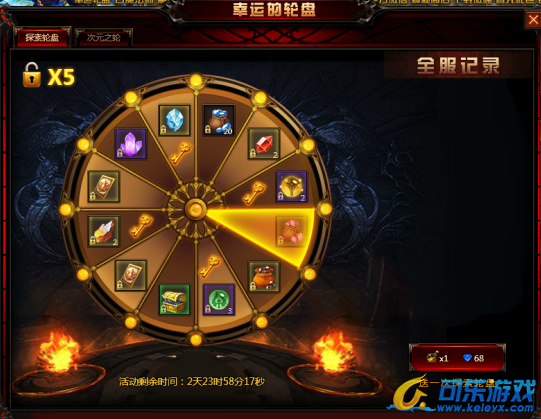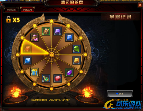 活动内容:玩家在活动时间内,使用68钻石可购买一次转盘机会,每获得5个次元要是可开启一分钟的次元之轮,次元之轮每次需要168钻石,奖励丰厚不容错过。