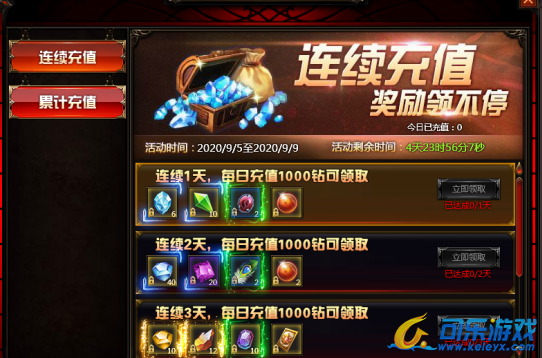 活动内容:活动时间内,玩家每日充值达到1000钻,即可获得丰厚奖励!