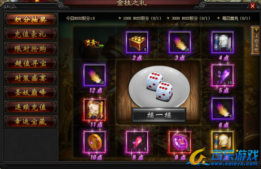 1.2 活动期间内击杀boss可获得积分,每天最多可以获得3次摇奖机会