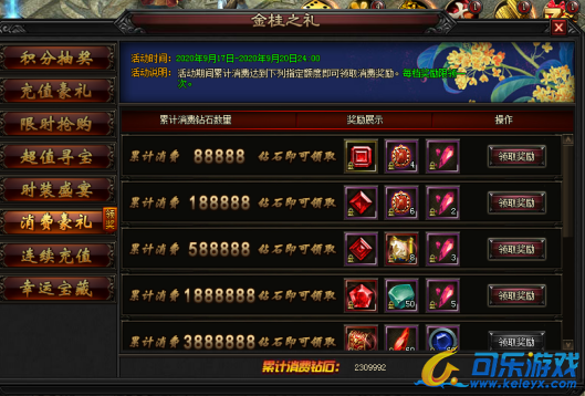 6.2活动期间内,累计消费钻石达到对应金额即可领取对应奖励,每档奖励限领一次