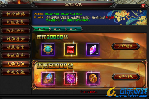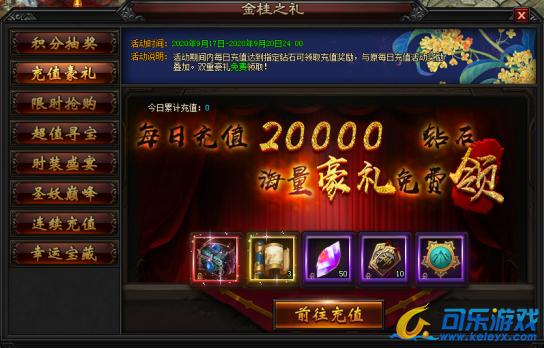 2.2 活动期间内,每日充值达指定钻石数额,即可领取充值奖励,可原每日充值奖励叠加领取
