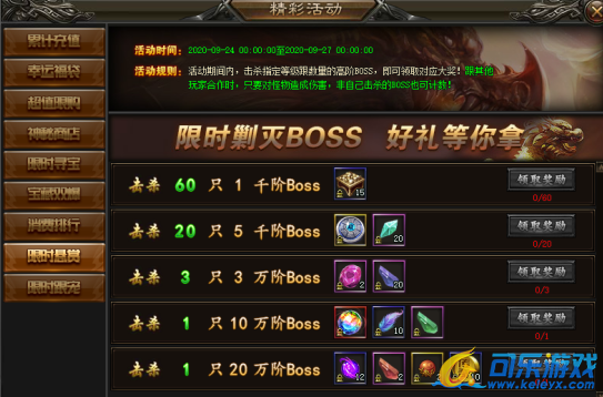 规则:根据击杀对应阶段的BOSS数量领取奖励