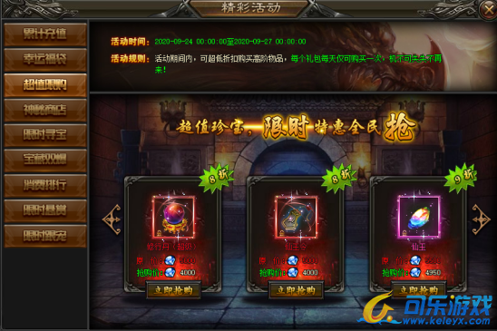 充值150000钻石:侠之魂*25,寻宝罗盘☆暗影*3,幻羽*100,7级生命宝石*2,7级韧性宝石*2。
