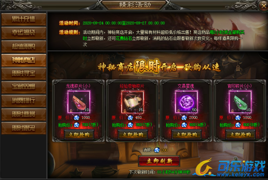 规则:每隔2小时神秘商店将会刷新各种市面上难以获取的珍贵物品