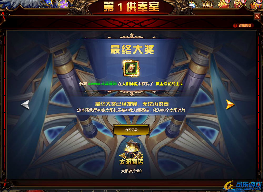 每日晚10点会结束供奉,并根据太阳礼券获取情况抽取最终奖励