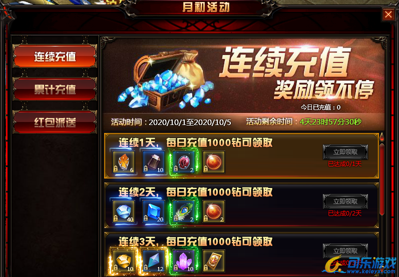 活动内容:活动时间内,玩家每日充值达到1000钻,即可获得丰厚奖励!