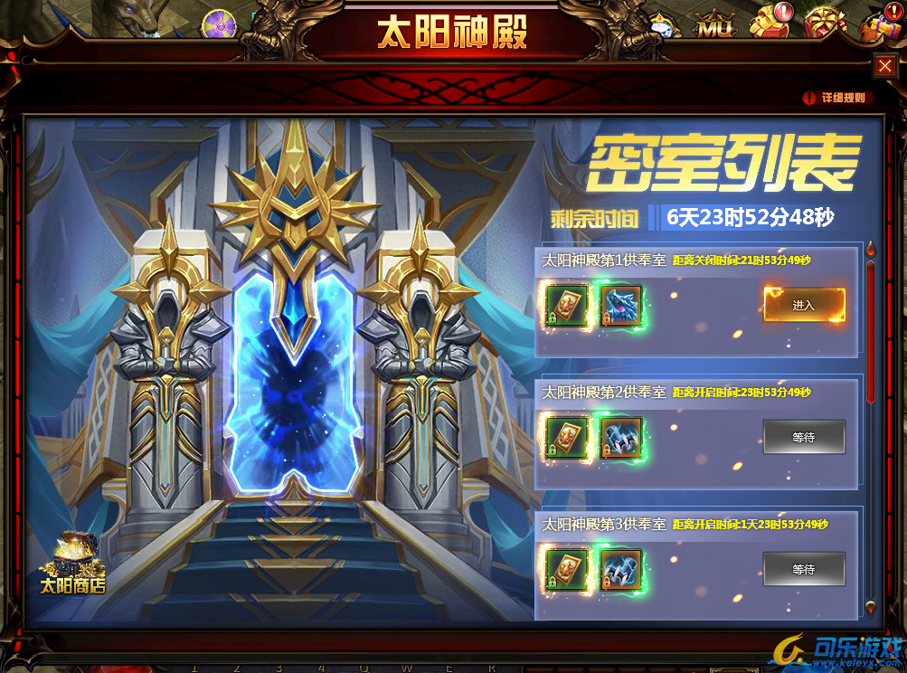 2. 玩家可使用金币和钻石进行供奉,每次供奉后可获得奖池内随机一件奖励,只有使用钻石供奉可额外获得太阳礼券