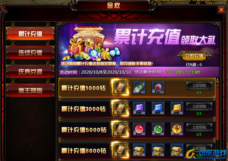 活动内容:玩家在活动时间内,累计充值达到一定钻石即可获得丰厚礼品,超值奖励等你来拿!