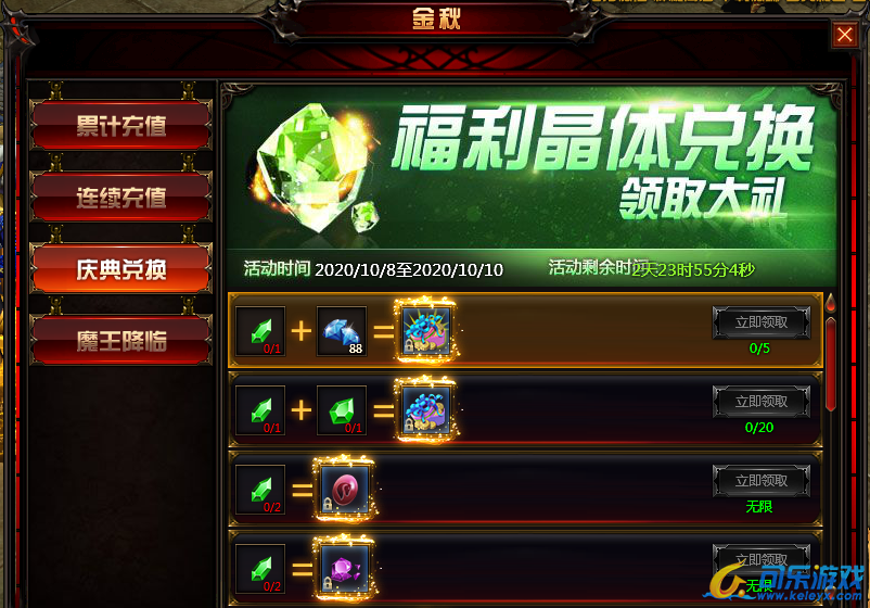 活动内容:玩家在日常挂机击杀小怪可获得小晶体,击杀野外BOSS、黄金BOSS、参与魔王降临活动可获得中晶体,使用不同晶体及钻石比例可兑换游戏中稀有道具,详情请根据游戏中活动兑换页面为准。