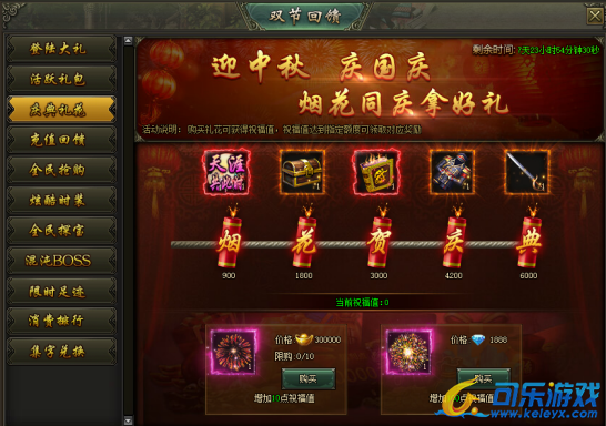 活动说明:活动期间,购买礼花可获得祝福值,祝福值达到指定额度可领取绝版称号、绝版时装