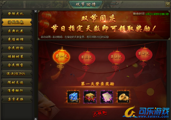 活动说明:活动期间,指定天数登陆游戏,即可领取超值大礼