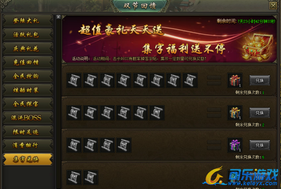 活动说明:活动期间,击杀BOSS有概率掉落字帖,集齐一定数量可兑换奖励!