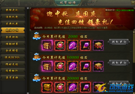 活动说明:活动期间,每日累计充值达到指定额度可领取对应奖励