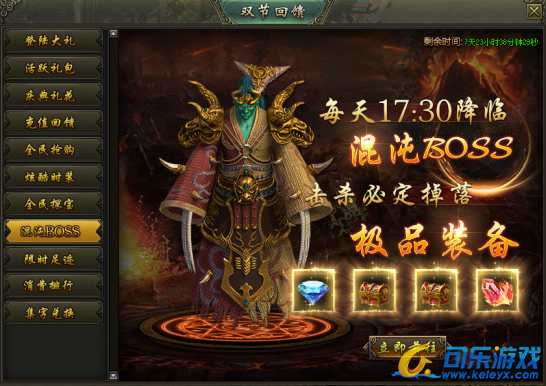 活动说明:活动期间,每天17:30降临混沌BOSS,击杀掉落大量奖励