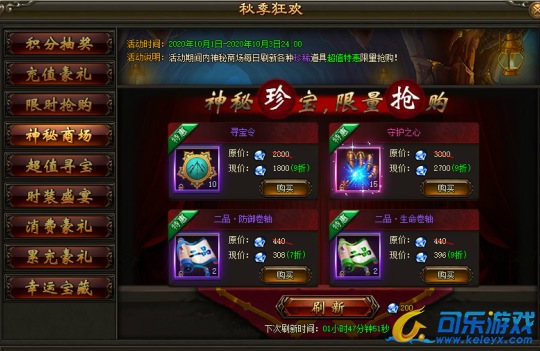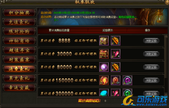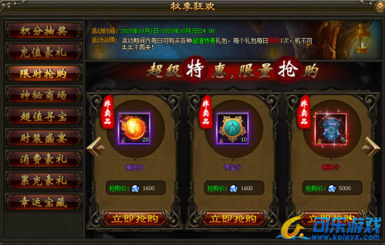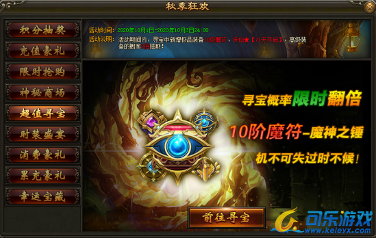 1.活动时间:10月1日0点~10月4日0点,点击“秋季狂欢”图标打开活动界面