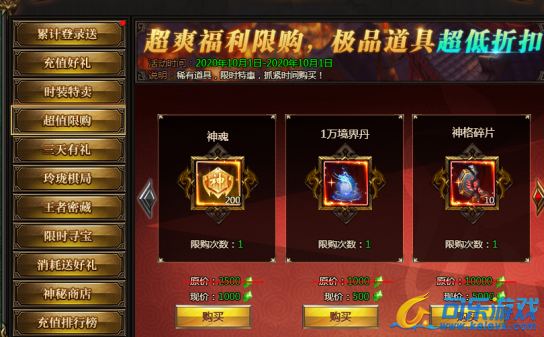 活动说明:各种稀有道具限时购买