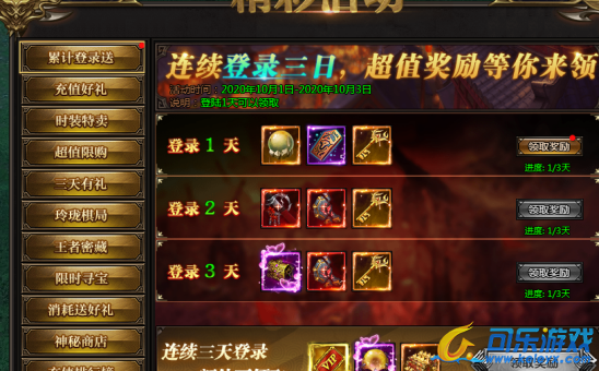 活动说明:活动期间,每天登陆即可领取奖励,连续三天更有额外奖励