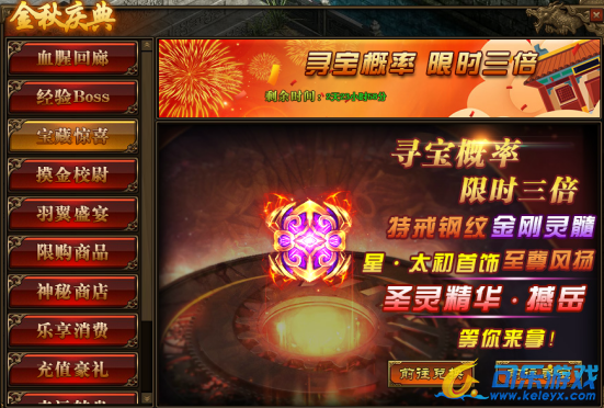 1.活动期间,玩家参与“多人副本-血腥回廊”,获得“传世灵器碎片”的概率翻倍;