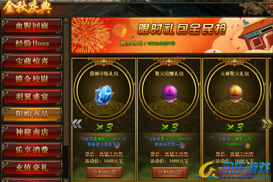 1.活动期间,玩家可在活动面板购买限购商品;(可翻页)