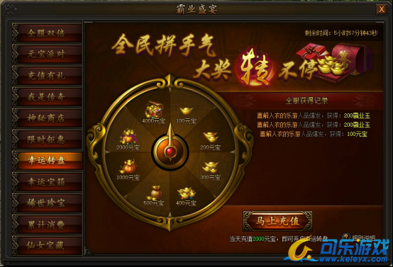 活动期间,充值并消费一定元宝即可使用幸运转盘,获得大量元宝道具,使用获得元宝后即可前往商城内购买珍稀道具,精彩不容错过。