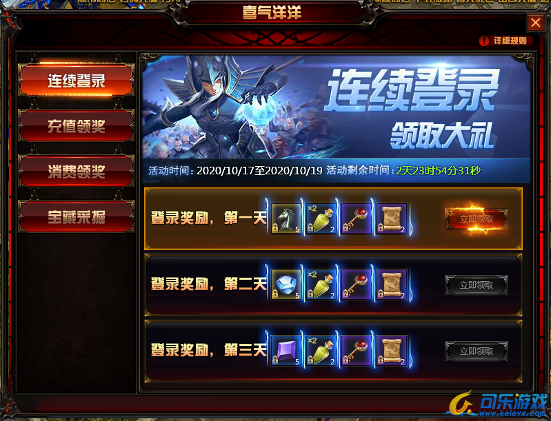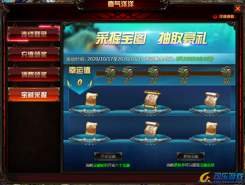 活动内容:玩家在活动时间内,可领取活动期间每日登陆可以获得1个“宝藏秘钥”,2张“更改券”。