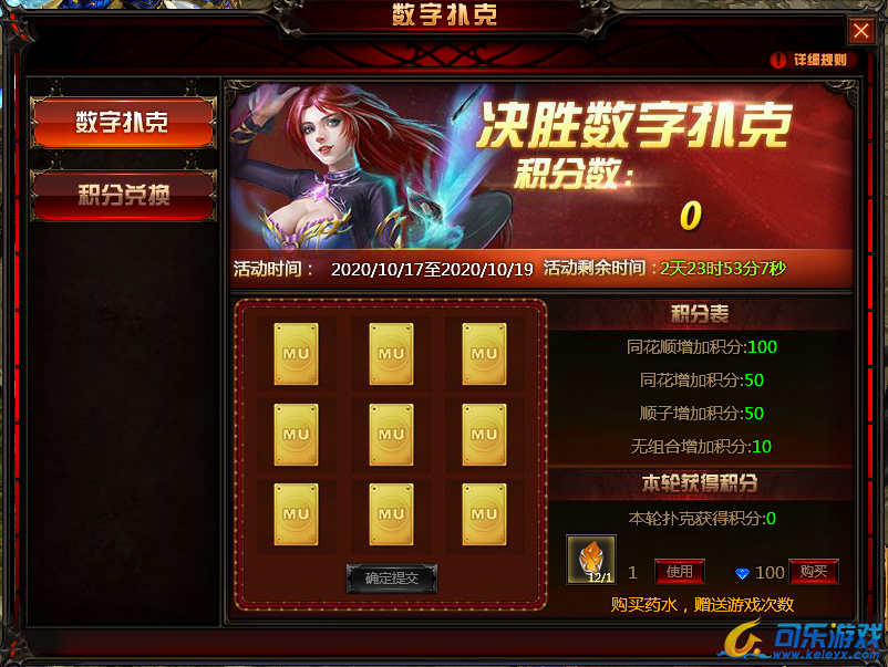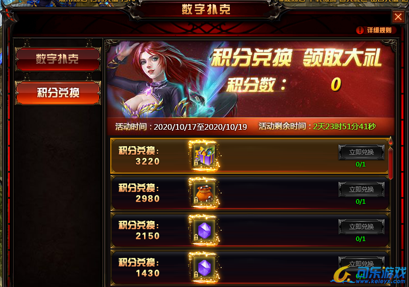 通过数字扑克获取的积分可以在积分兑换界面兑换丰厚奖励,快来参加吧!