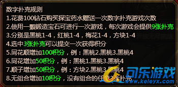 活动内容:活动时间内,玩家可以花费100钻石或1个锻造宝石购买探宝药水并获赠一次数字扑克游戏次数。