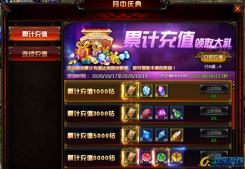 活动内容:活动时间内,玩家每日充值达到2000钻,即可获得丰厚奖励!