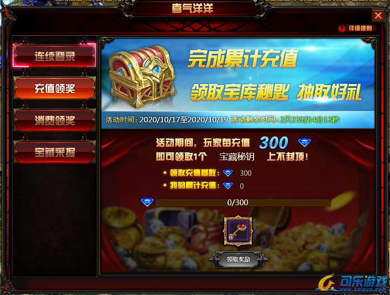 每充值300钻石可获得1个“宝藏秘钥”,每消费600钻石可获得1个“更换券”。