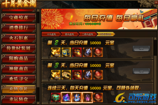 2.连续充值达到3天,奖励翻倍领,更可领取暗影晶石、地狱晶石、随机阵法宝珠宝箱等贵重物品