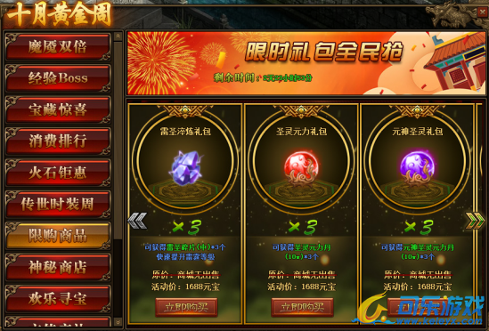 1.活动期间,玩家可在活动面板购买限购商品;(可翻页)