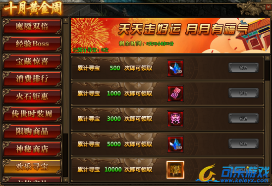 1.活动期间,玩家累计寻宝次数满足要求,可以领取高级仙装、本职业星石、仙装灵器等相应奖励;