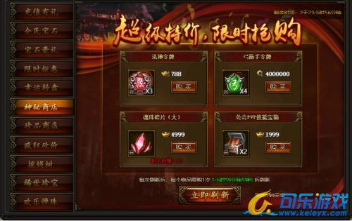 活动时间:2020年10月21日0点——10月24日23:59活动期间,每两小时神秘商店会自动刷新一批道具,也可花费元宝立即刷新,大量道具限时等你抢购。