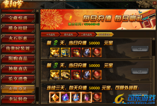 2.连续充值达到3天,奖励翻倍领,更可领取暗影晶石、地狱晶石、觉醒晶石等贵重物品