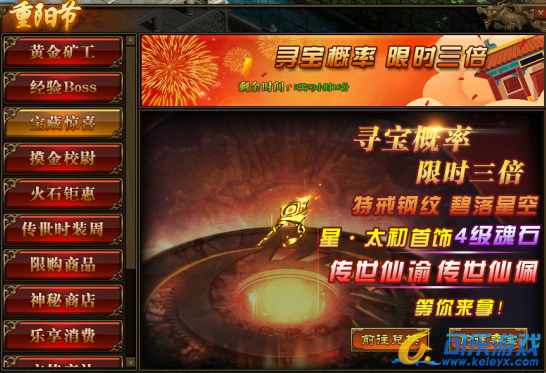 1.活动期间,玩家寻宝概率翻倍,极高几率获得星·太初首饰,传世灵器、传世灵甲,特戒钢纹,仙元石、碧落星空,传世灵器、传世灵甲,高级天魂石、四级魂石,传世灵器·仙谕以及传世灵器·仙佩