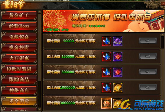 1.活动期间,玩家累计消费满足要求,可以领取境界修为、本职业星石、传世灵戒等相应奖励;