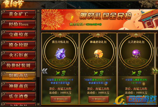 1.活动期间,玩家可在活动面板购买限购商品;(可翻页)