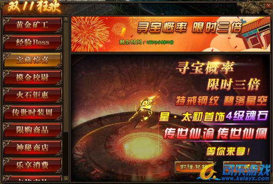 1.活动期间,玩家寻宝概率翻倍,极高几率获得星·太初首饰,传世灵器、传世灵甲,特戒钢纹,仙元石、碧落星空,传世灵器、传世灵甲,高级天魂石、四级魂石,传世灵器·仙谕以及传世灵器·仙佩