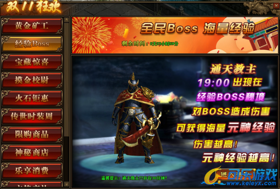 2.活动中,玩家对BOSS造成的伤害,将在活动结束后转换成元神经验并发放;