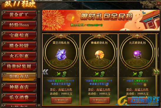 1.活动期间,玩家可在活动面板购买限购商品;(可翻页)