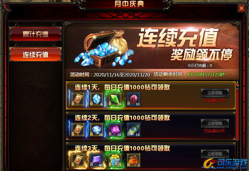 活动内容:活动时间内,玩家每日充值达到1000钻,即可获得丰厚奖励!