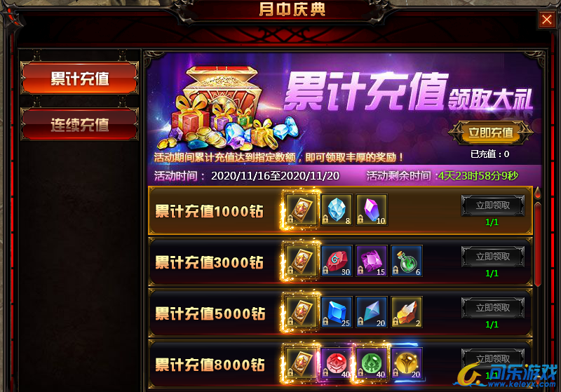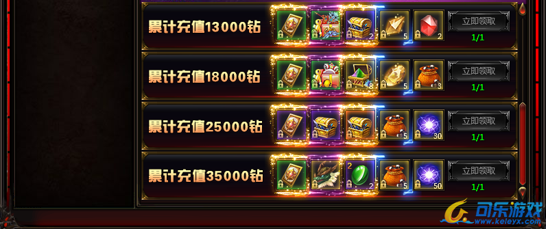 活动内容:玩家在活动时间内,累计充值达到一定钻石即可获得丰厚礼品,超值奖励等你来拿!