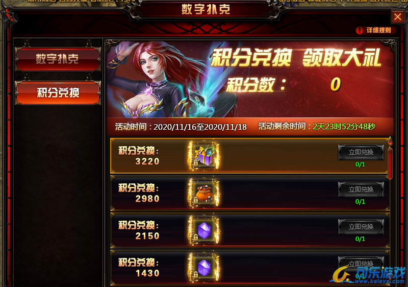 通过数字扑克获取的积分可以在积分兑换界面兑换丰厚奖励,快来参加吧!