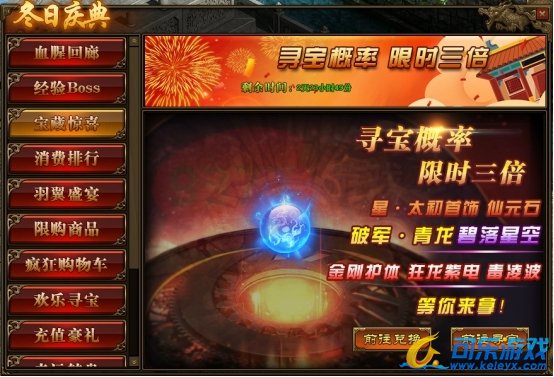 1.活动期间,玩家寻宝概率翻倍,极高几率获得星·太初首饰,特戒钢纹、仙元石、碧落星空,传世灵器、传世灵甲,封神秘法书页以及破军·青龙