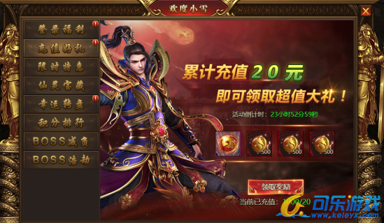 1.活动期间,玩家每日充值20、200、500元、1000元,均可领取超值大礼;