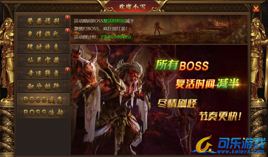 1.活动期间所有boss复活时间减半(跨服boss除外)