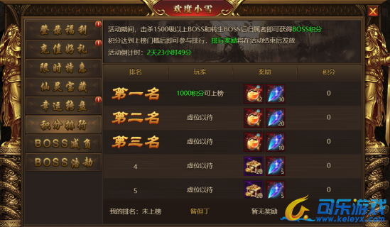 1.活动期间击杀1500级以上的boss和转生boss获得积分,活动结束后更加排行邮件发送奖励