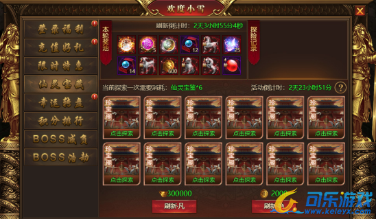 活动内容:活动期间击可以点击卡牌消耗仙灵宝鉴进行探宝,每次探索可从展示的奖励中抽取一件