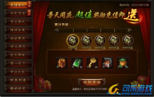活动期间,充值元宝即可领取五档丰厚奖励,每天均可领取一次,不容错过!
